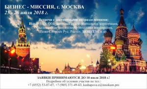 В период с 25 по 26 июля 2018 года Машиностроительным кластером Республики Татарстан при содействии Камского инновационного территориально-производственного кластера «ИННОКАМ» и Камского центра кластерного развития Республики Татарстан формируется делегация промышленных предприятий для участия в бизнес-миссии в г. Москва.
