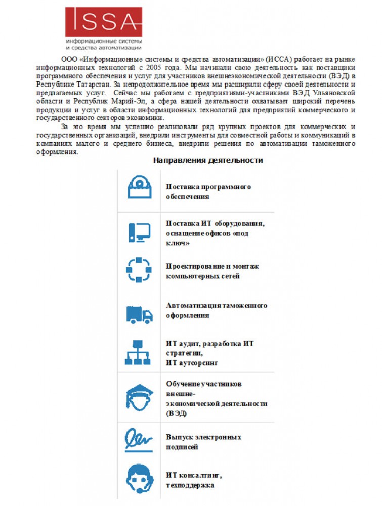 В целях продвижения продукции и возможностей кооперации компаний, являющиеся участниками отраслевых кластеров Камского центра кластерного развития и Камского инновационного территориально-производственного кластера (НП «Иннокам»), состоится презентация ООО «ИССА»