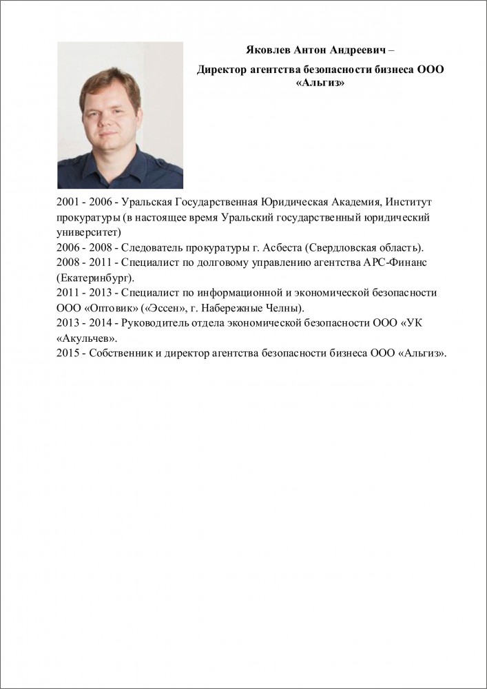 Яковлев Антон – Собственник и директор агентства безопасности бизнеса ООО «Альгиз».
