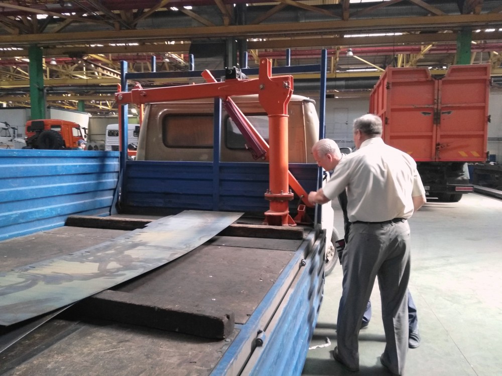 Мини кран – устанавливается на бортовую платформу или в фургон грузового автомобиля Газель, УАЗ, Хундай, Исудзу, Тагаз и др. подключается к бортовой сети 12В (24В.), предназначен для погрузки и выгрузки грузов весом до 500 кг. Высота колонны крана 1225мм.