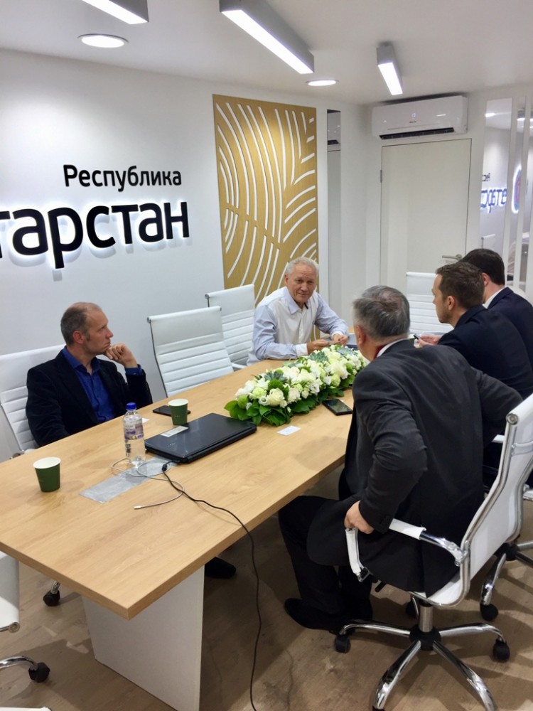 На объединенном стенде Республики Татарстан, организованном при поддержке Агентства инвестиционного развития Республики Татарстан, были проведены рабочие встречи с профессором МГИМО и генеральным директором Исследовательского центра «Международная торговля и интеграция», Владимиром Саламатовым, руководством ФГАОУ ВО «Дальневосточный федеральный университет» и Технопарка «Русский», который был открыт на о. Русский (Приморский край) в 2017 году.