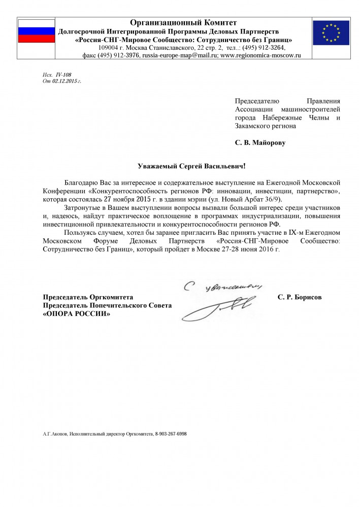 Ежегодная Московская конференция является составной частью Долгосрочной Интегрированной Программы Деловых Партнерств «Россия – Европа: Сотрудничество Без Границ» Московской Ассоциации Предпринимателей.