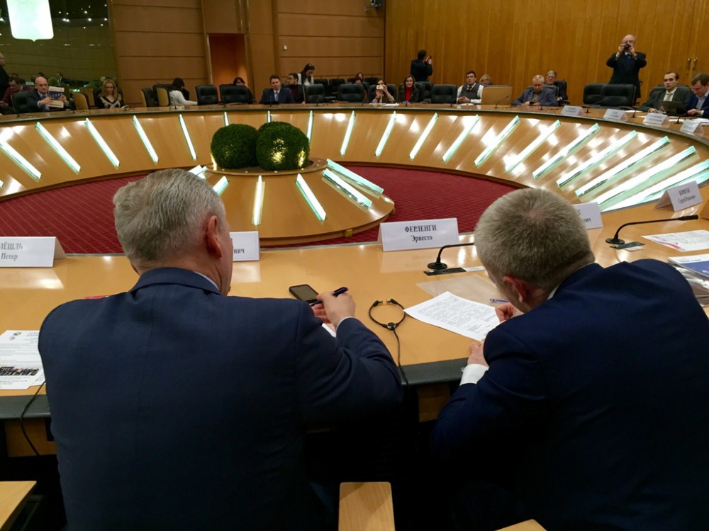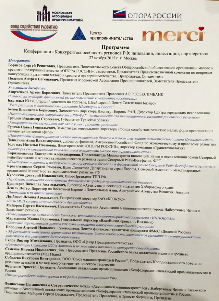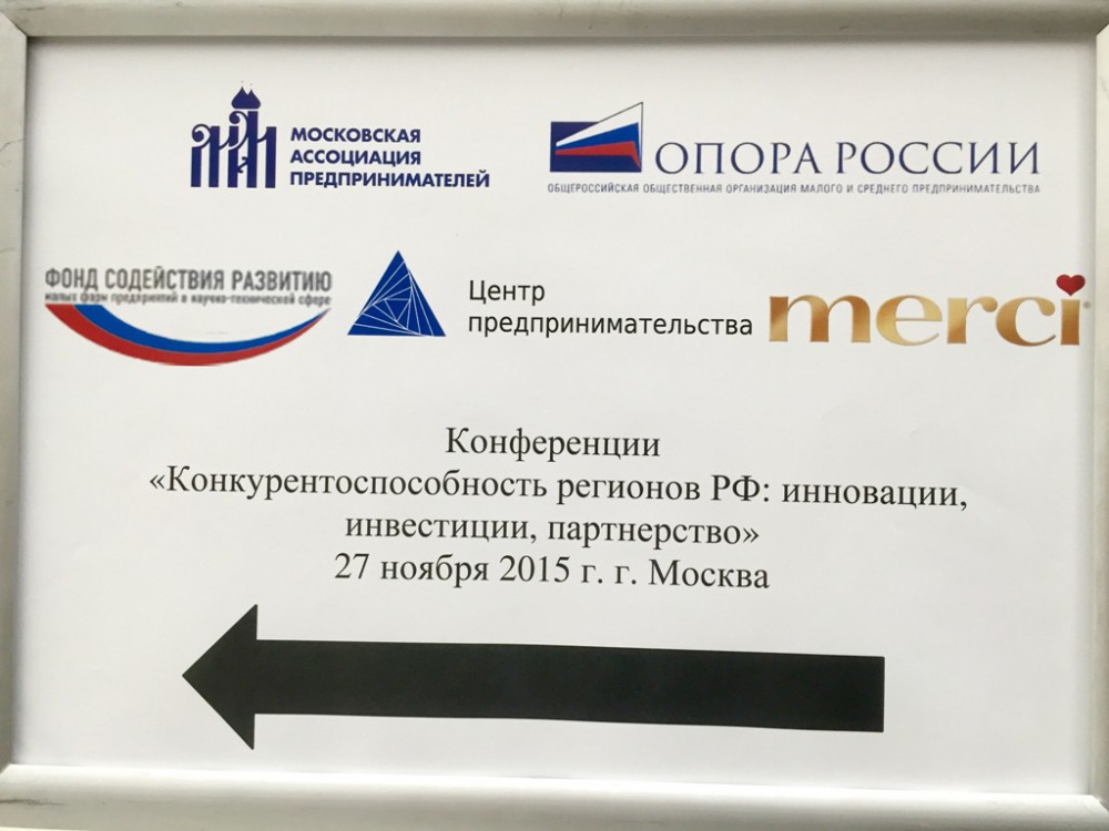 27 ноября 2015 года в здании Правительства Москвы на Новом Арбате прошла пятая конференция «Конкурентоспособность регионов РФ: инновации, инвестиции, партнерство». Модераторами пленарного заседания выступили председатель Попечительского Совета Общероссийской общественной организации «ОПОРА РОССИИ» Сергей Борисов и президент Московской ассоциации предпринимателей Андрей Поденок.