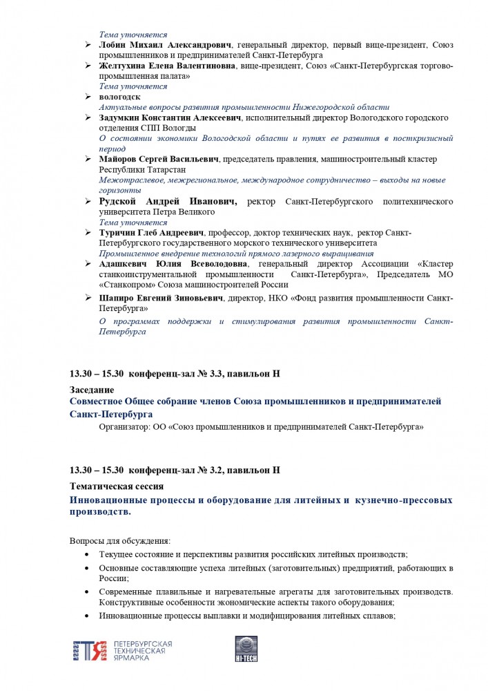 В совместном Общем собрании членов Союза промышленников и предпринимателей Санкт-Петербурга Сергей Майоров примет участие в качестве почётного гостя (13.30–15.30, конференц-зал № 3.3).