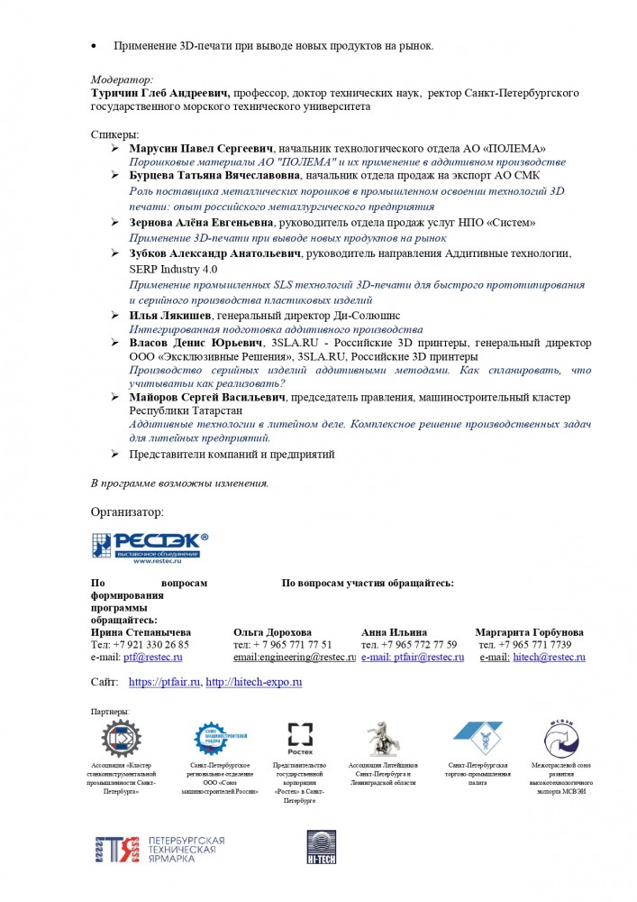 22 апреля на сессии «Лазерные и аддитивные технологии в промышленности» Сергей Майоров расскажет об аддитивных технологиях в литейном деле (13.00–16.00, конференц-зал №3.2).