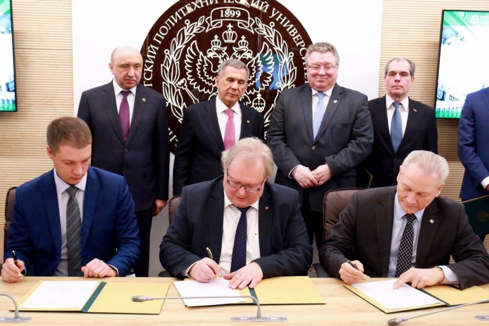 В завершение состоялось подписание ряда соглашений о сотрудничестве между СПбПУ и вузами, и компаниями Республики Татарстан.