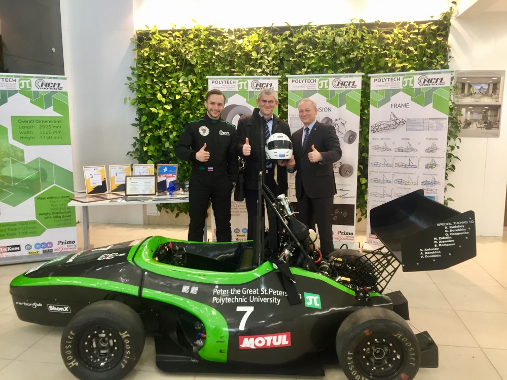 В научно-исследовательском корпусе СПбПУ Минниханов осмотрел выставку научно-технического творчества молодежи, где были представлены современные разработки и опытные образцы техники. Солнцемобиль, который продемонстрировали президенту РТ, в этом году планирует выступить на крупнейшей международной гонке солнцемобилей — World Solar Challenge.